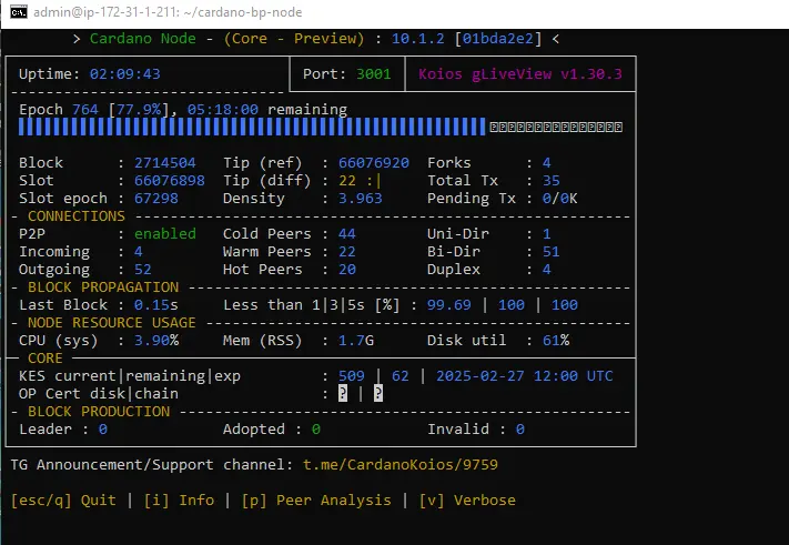 End-to-end Cardano Block Producer deployment on Preview Testnet. Source compilation, cryptographic key lifecycle, and on-chain stake pool registration.